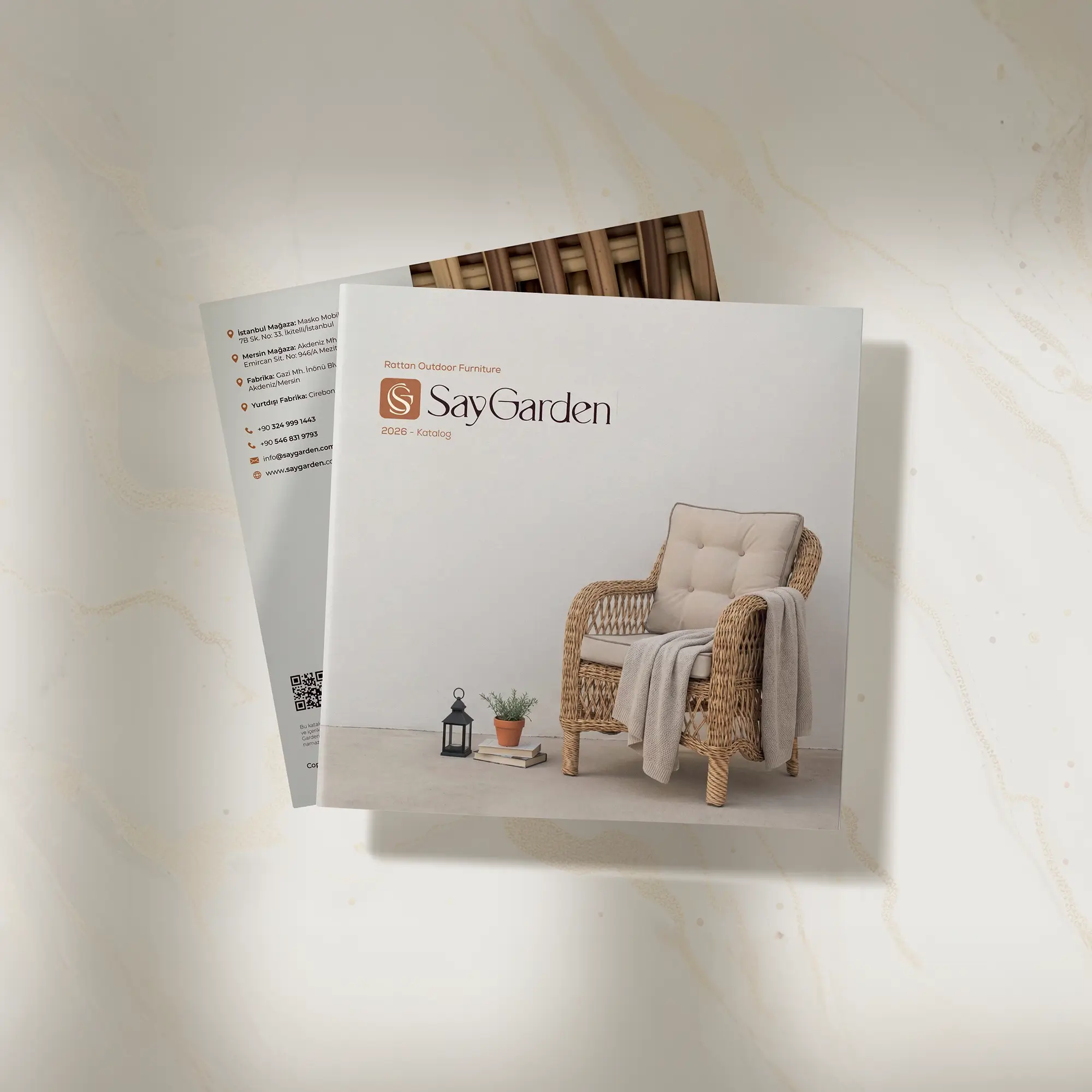 Say Garden ürünlerinde kullanılan her materyal; doğaya uyum, uzun ömür ve estetik denge gözetilerek seçilir. Açık hava koşullarına dayanıklı yapılar, zamansız dokular ve günlük kullanıma uygun çözümler bir araya gelir.