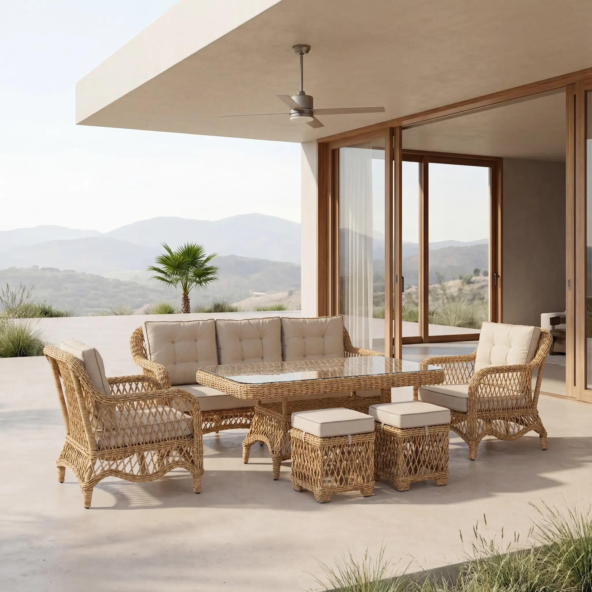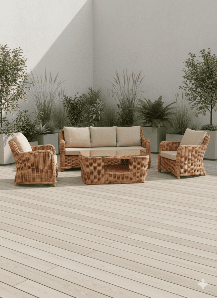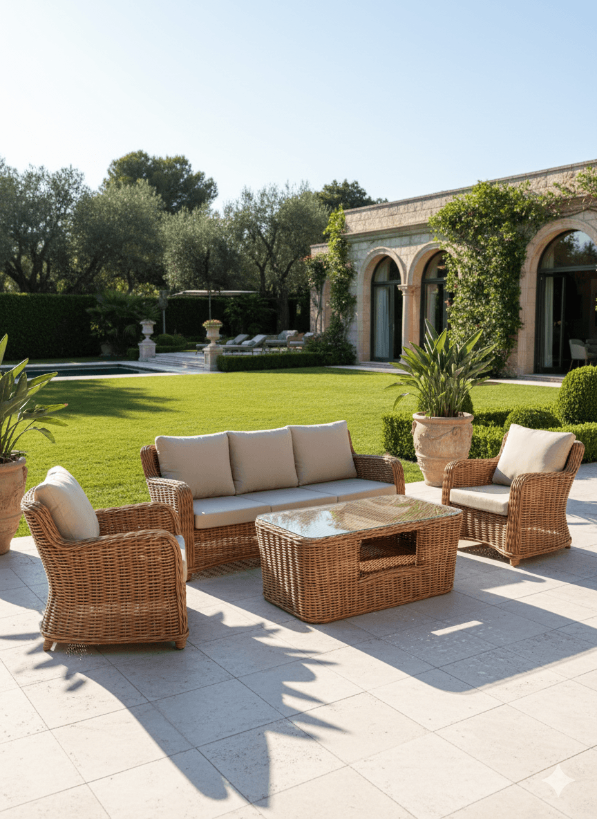 Zamansız rattan görünümü. Hava koşullarına dayanıklı yapı