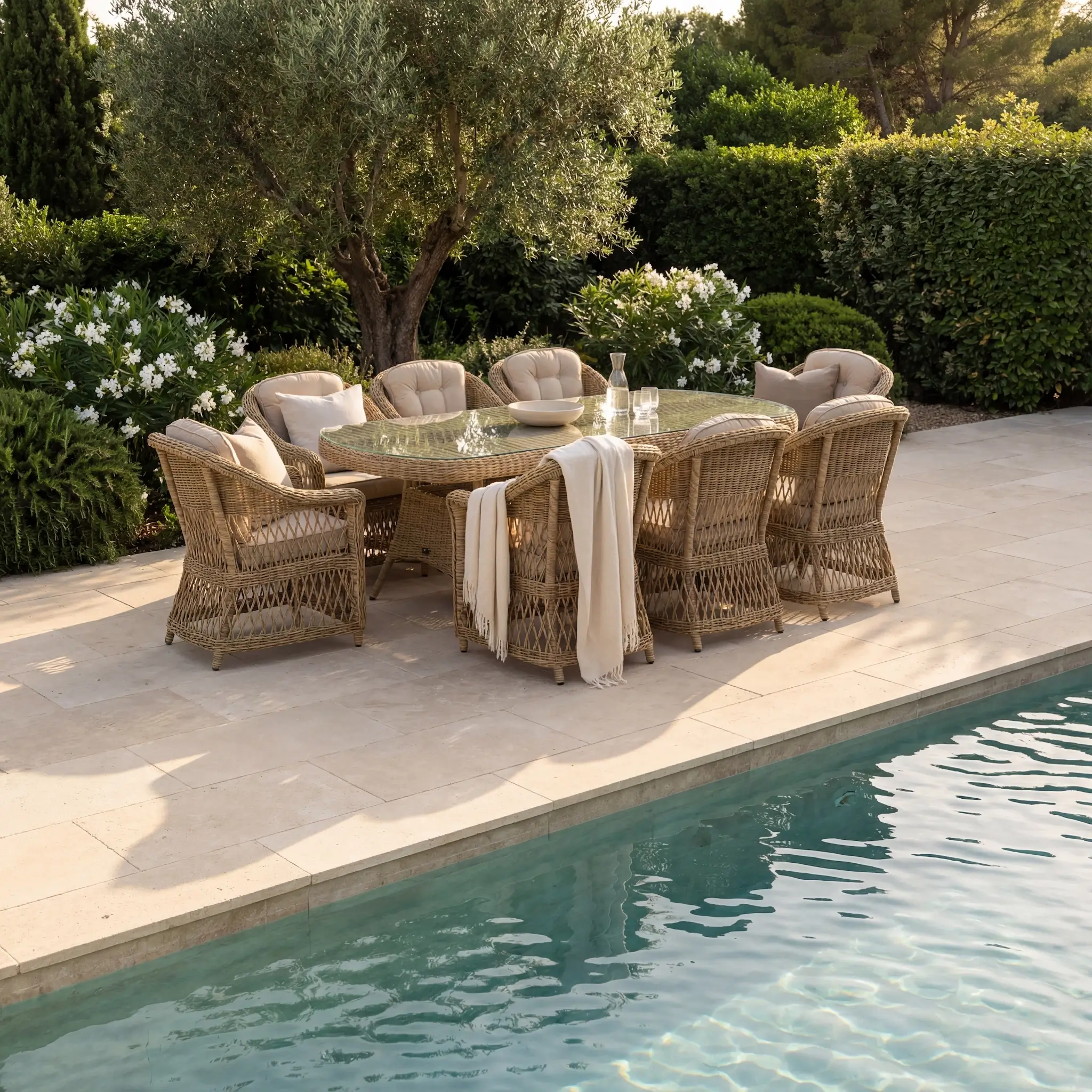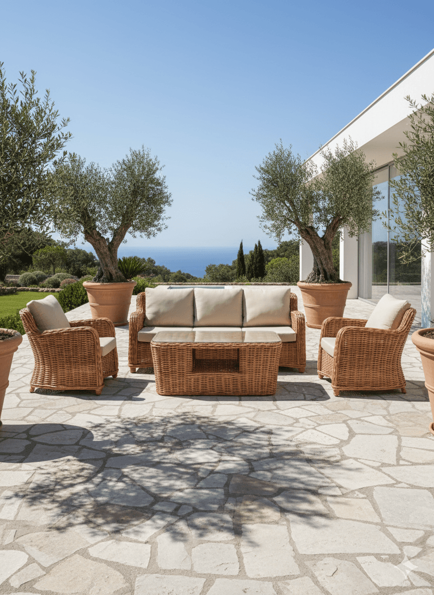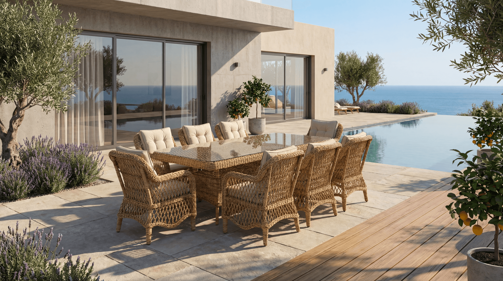 Zamansız rattan görünümü. Hava koşullarına dayanıklı yapı