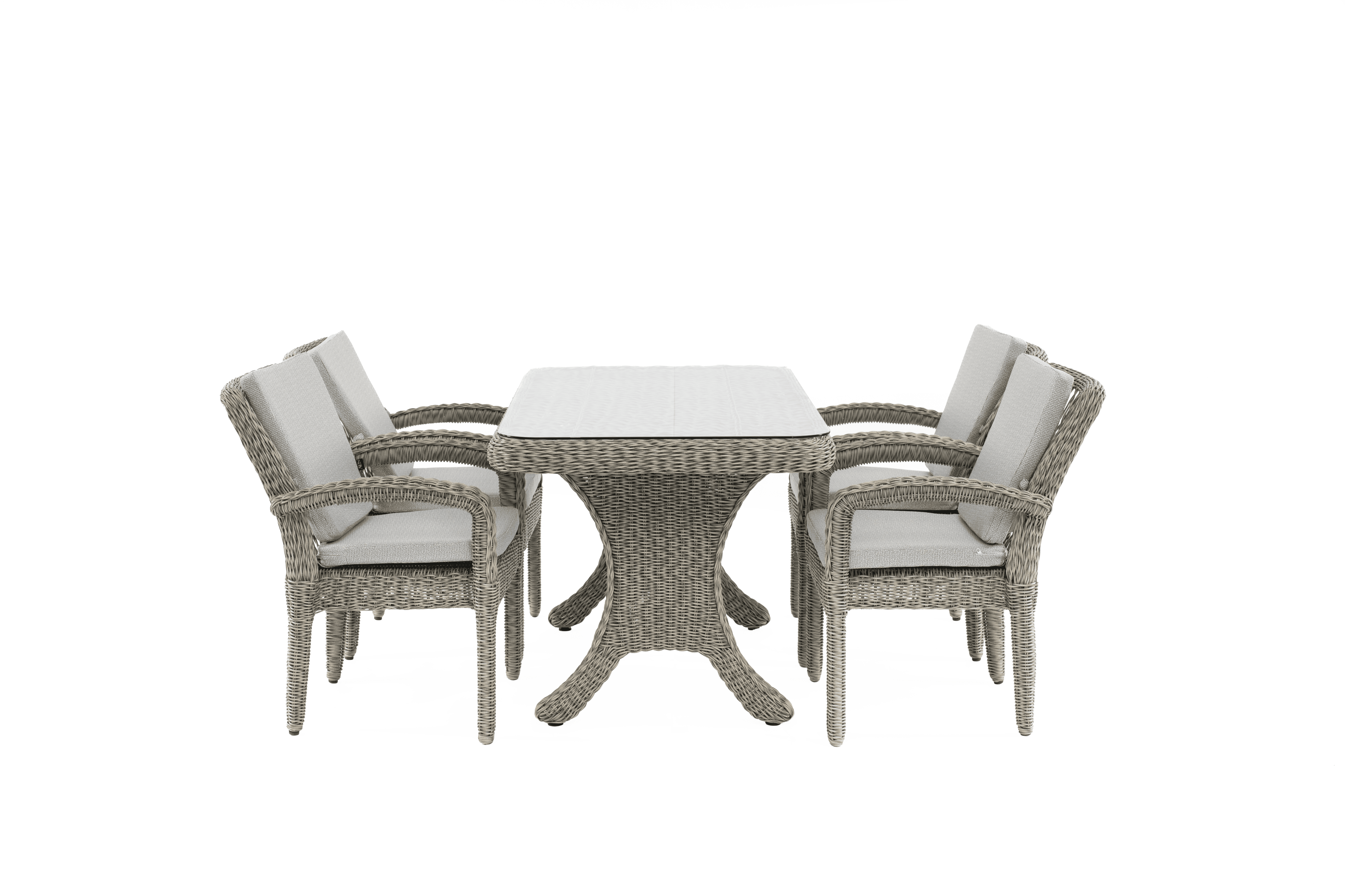 GEORGIA, kompakt ölçüler içinde düzenli ve sosyal bir açık alan kurgusu sunar. Net hatları ve dengeli yerleşimiyle mekâna ferahlık kazandırır; günlük kullanımı kolay, davetkâr bir atmosfer oluşturur. 210 × 150 cm’lik yerleşimi, balkonlar ve küçük teraslar için ideal bir ölçekte konforlu bir kullanım alanı yaratır. 4 mm putar örgü yapısı, yüzeyde ince ve kontrollü bir doku sunar. Hafif örgü karakteri, tasarıma zarif bir görünüm kazandırırken dayanıklı yapısıyla uzun süreli kullanımı destekler. SAY-105 renk tonu, sade ve zamansız bir ifade sunarak farklı açık alan kurgularıyla uyum içinde çalışır. Sandalye modülleri, dengeli oturum ölçüleri ve destekleyici sırt yapısıyla rahat bir oturma deneyimi sağlar. 140 × 80 × 78 cm ölçülerindeki masa, setin merkezinde konumlanarak hem yemek hem de sosyal kullanım için işlevsel bir denge unsuru oluşturur. GEORGIA, açık alanlarda düzen, pratik kullanım ve sade estetik arayanlar için tasarlanmış; kompakt ama karakterli bir yemek ve oturma setidir.