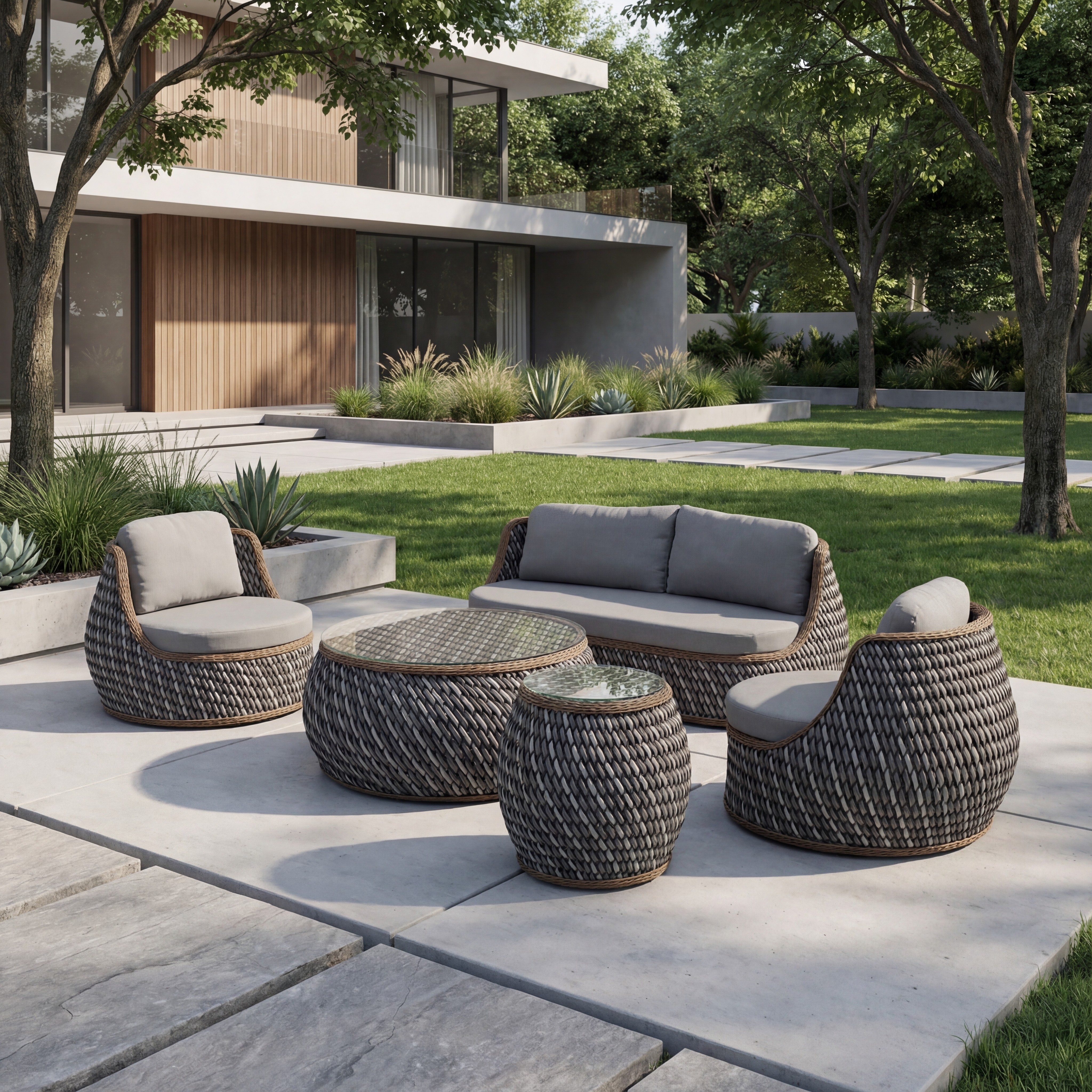 GUCI, güçlü hacmi ve belirgin form diliyle açık alanlarda net bir tasarım ifadesi sunar. Geniş ölçüleri sayesinde mekânı tek hamlede tanımlar; rahat, düzenli ve prestijli bir yaşam alanı oluşturur. 360 × 240 cm’lik yerleşimi, özellikle ferah teraslar ve geniş bahçeler için ideal bir ölçek sunar. 15 mm full flat örgü yapısı, GUCI’nin karakterini belirleyen en güçlü detaydır. Düz ve geniş yüzey etkisi yaratan bu örgü, modern ve mimari bir görünüm kazandırırken aynı zamanda tok ve dayanıklı bir yapı sunar. Grey renk tonu, ürüne sofistike ve çağdaş bir duruş kazandırır; farklı açık alan tasarımlarıyla güçlü bir uyum yakalar. Tekli (95 × 105 × 75 cm) ve Kanepe (195 × 105 × 75 cm) koltuk modülleri, geniş oturum alanlarıyla maksimum konfor hedeflenerek tasarlanmıştır. Derin ve rahat oturum, uzun süreli kullanımlarda dahi konforu korur. Yan sehpa (47 × 65 cm) ve orta sehpa (100 × 55 cm), kullanım kolaylığı sağlayan işlevsel detaylar olarak oturma alanını tamamlar. GUCI, modern mimariyle uyumlu, güçlü ve karakterli bir açık alan düzeni arayanlar için tasarlanmıştır. Zamansız çizgileri, sağlam yapısı ve net tasarım diliyle bulunduğu mekâna kalıcı bir değer katar.