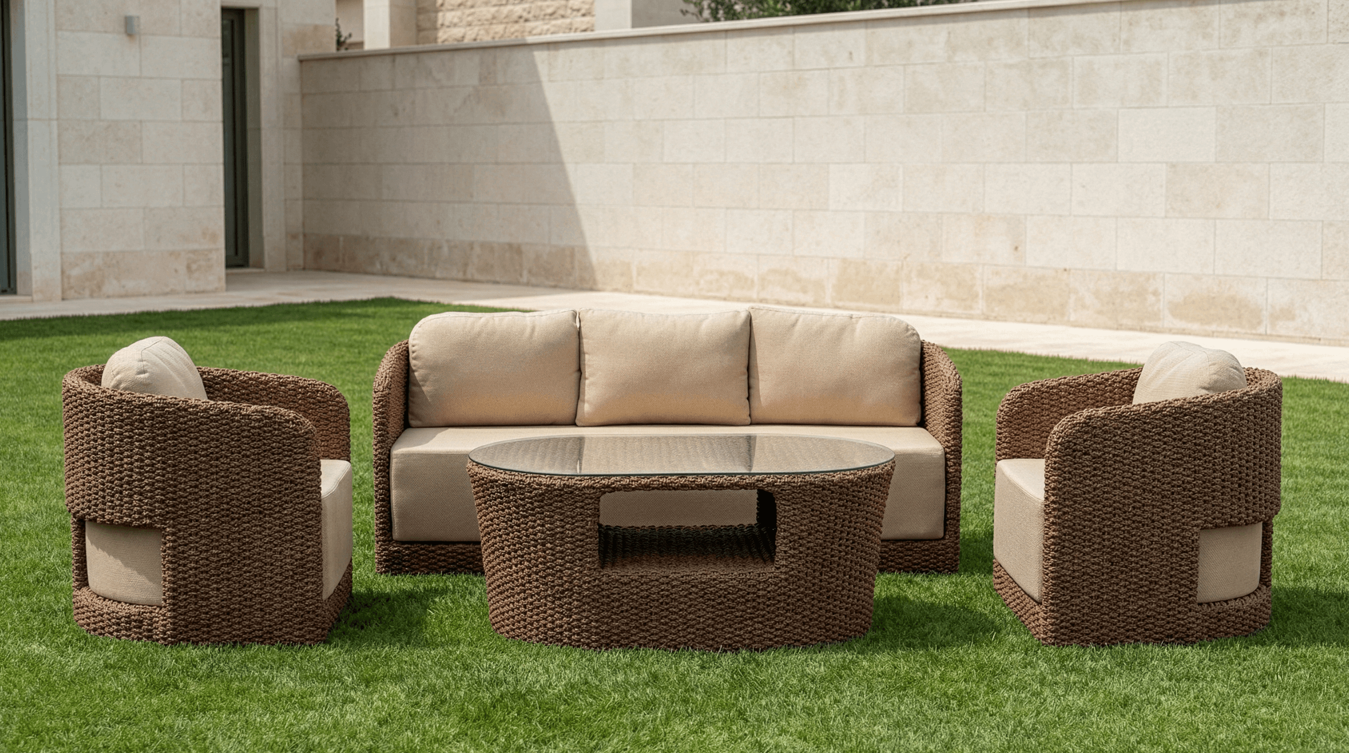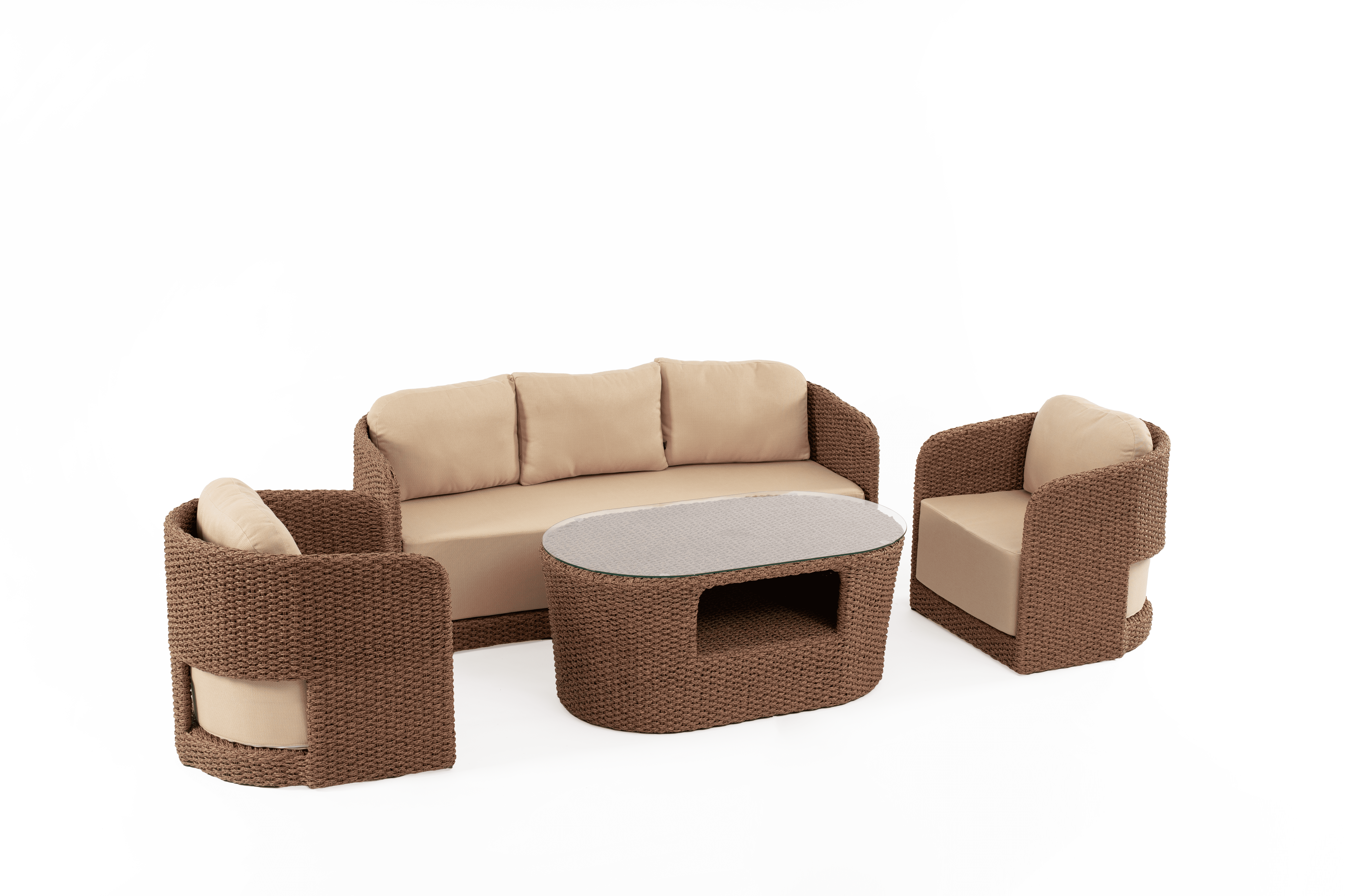 KEPAN, dengeli oranları ve karakteristik örgü yapısıyla açık alanlarda sakin ama net bir duruş sergiler. Ne fazla iddialı ne de geri planda kalan bir tasarım anlayışıyla, mekânın doğal akışına uyum sağlar. 360 × 160 cm’lik yerleşimi, daha kompakt alanlarda bile düzenli ve ferah bir kullanım sunar. 5–6 mm Kepan örgü dokusu, ürüne özgün bir yüzey karakteri kazandırır. El işçiliğini çağrıştıran bu örgü, tasarıma sıcaklık ve doğallık katar. Kepang Tua (koyu) ve Kepang Muda (açık) renk seçenekleri, farklı mekân kurgularına uyum sağlayacak esnek bir ifade sunar; biri daha güçlü ve derin, diğeri daha hafif ve ferah bir etki yaratır. Tekli (73 × 77 × 73 cm) ve Kanepe (185 × 77 × 73 cm) koltuk modülleri, kompakt ölçülerine rağmen dengeli bir konfor sunacak şekilde tasarlanmıştır. Orta yükseklikte sırt yapısı, rahatlığı desteklerken formun sadeliğini korur. 120 × 70 × 55 cm ölçülerindeki sehpa, kompozisyonu tamamlayan işlevsel ve ölçülü bir merkez parça olarak konumlanır. KEPAN Koltuk Takımı, balkonlar, küçük teraslar ve sınırlı alanlı bahçeler için ideal bir çözümdür. Doğal dokusu, yalın çizgileri ve zamansız karakteriyle uzun yıllar kullanılabilecek dengeli bir tasarım sunar.