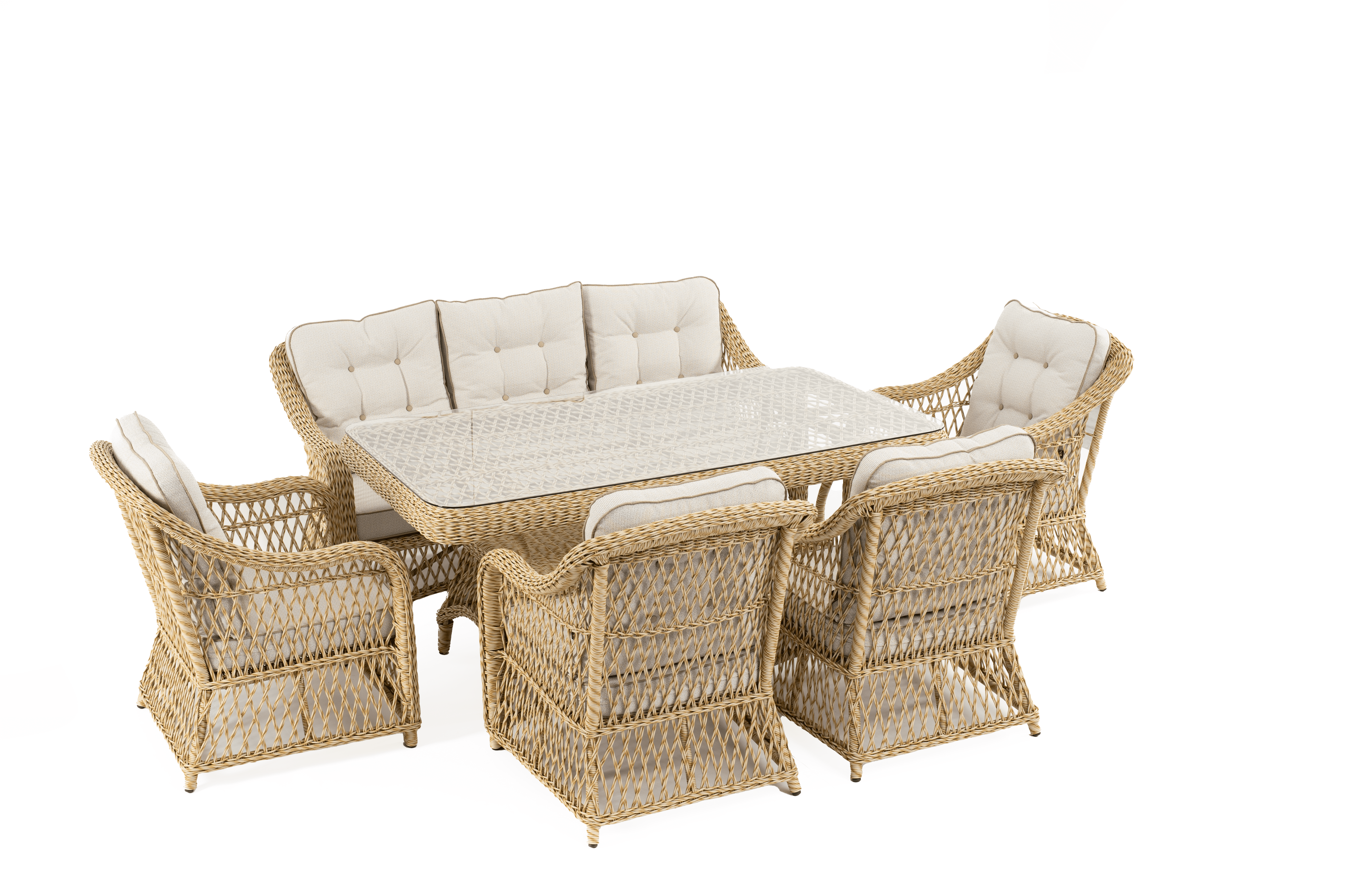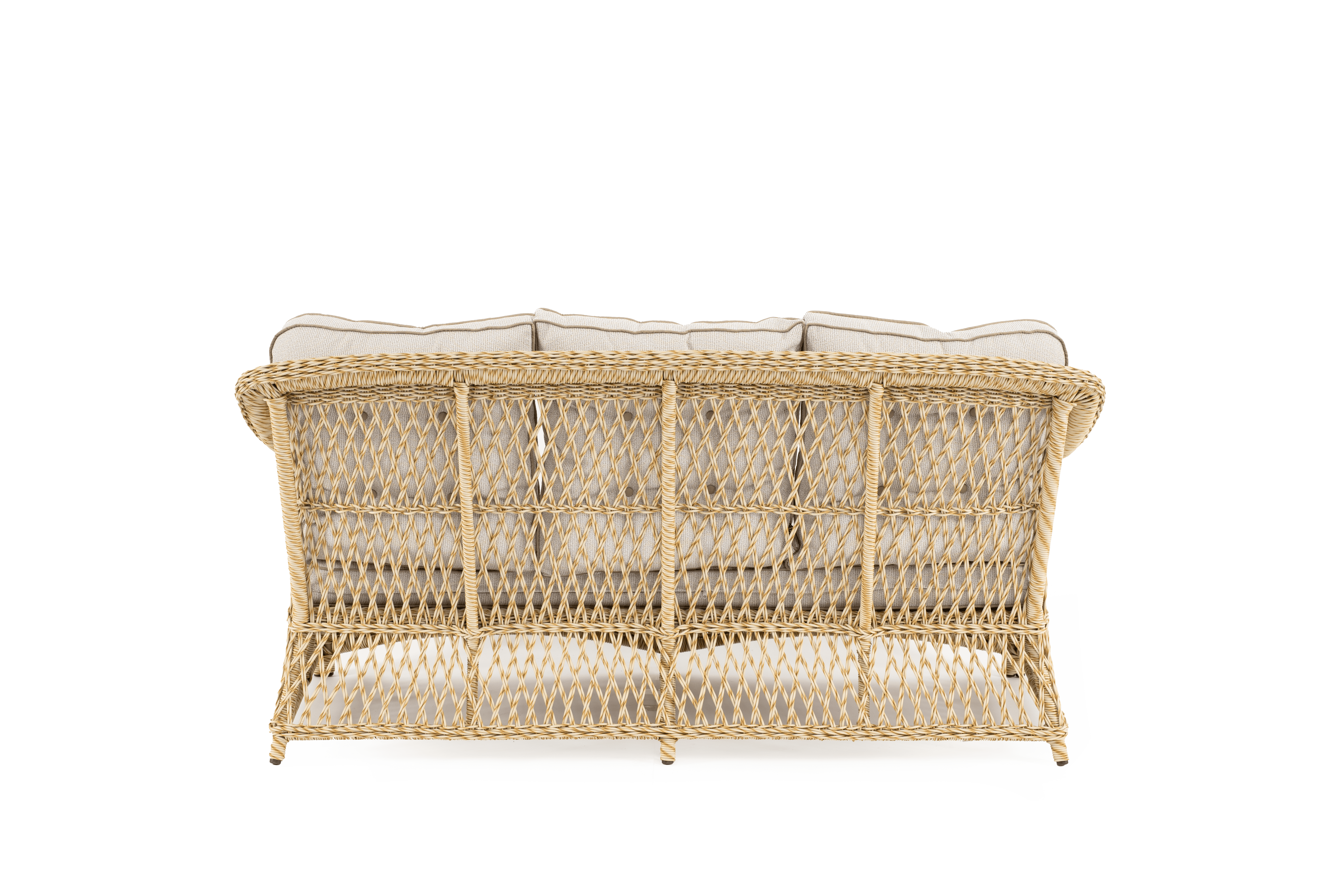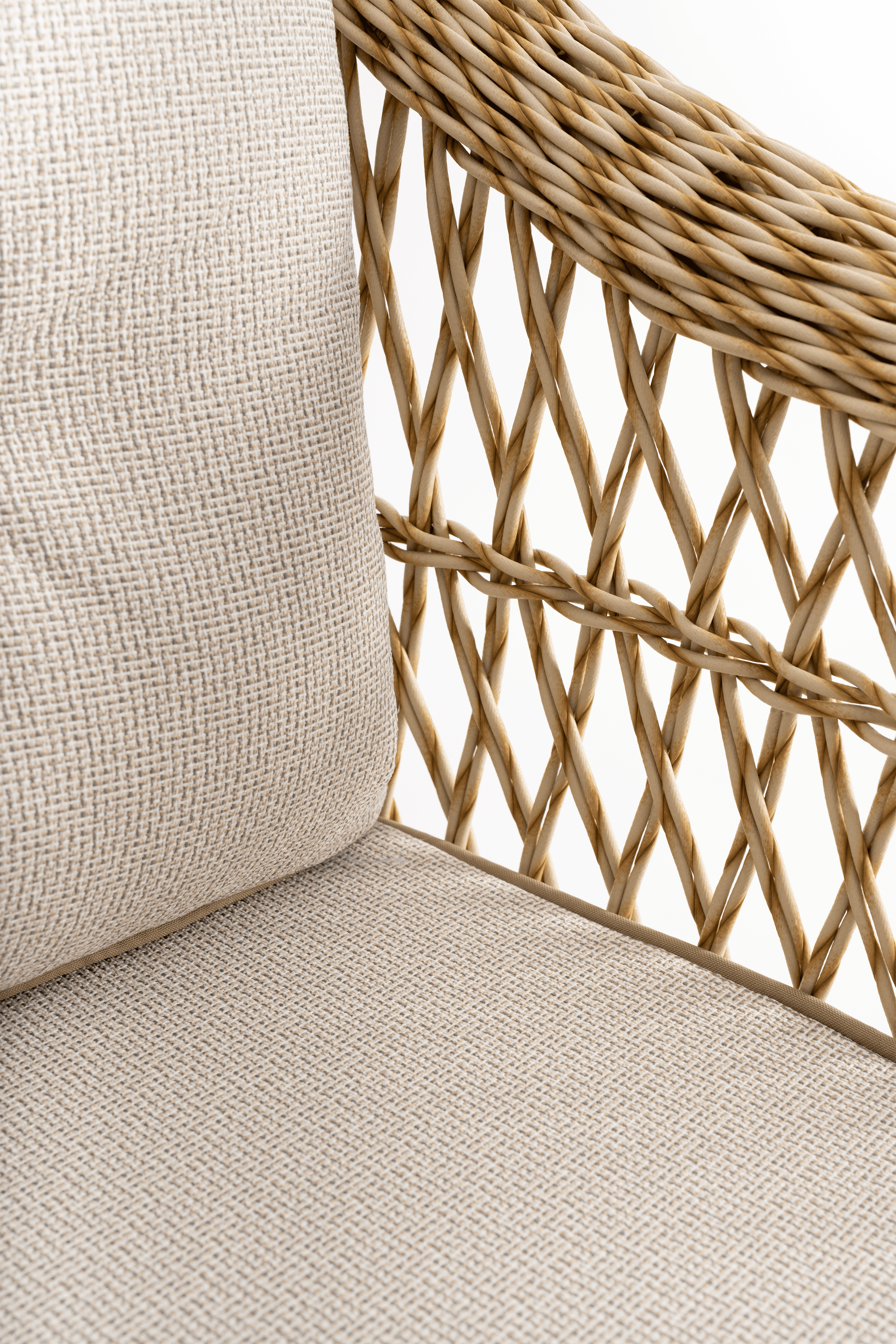 KUNNINGAN, güçlü duruşu ve net geometrisiyle açık alanlarda mimari bir ifade oluşturur. Geniş yerleşimi sayesinde mekânı tek bir bütün hâlinde organize eder; düzenli, dengeli ve prestijli bir yaşam alanı kurgular. 350 × 280 cm’lik ölçüsü, özellikle büyük teraslar ve ferah bahçeler için ideal bir ölçek sunar. 5 mm putar örgü yapısı, tasarıma kontrollü ve rafine bir yüzey etkisi kazandırır. İnce dokusu, formun netliğini desteklerken premium malzeme hissini öne çıkarır. SAY-103 renk tonu, modern ve zamansız bir karakter sunar; farklı mimari yaklaşımlarla kolayca uyum sağlar. Tekli (80 × 80 × 95 cm) ve Kanepe (185 × 80 × 95 cm) koltuk modülleri, yüksek sırt yapısı ve dengeli oturum oranlarıyla uzun süreli kullanım için güçlü bir konfor sağlar. Dikey form, oturum sırasında destek sunarken tasarımın kararlı duruşunu pekiştirir. 180 × 100 × 78 cm ölçülerindeki masa, oturma alanını tamamlayan, sosyal kullanımı destekleyen merkezi bir unsur olarak konumlanır. KUNNINGAN, açık alanlarda yalnızca oturmak değil; bir araya gelmek, paylaşmak ve zaman geçirmek için tasarlanmıştır. Zamansız çizgileri ve sağlam yapısıyla, bulunduğu mekâna uzun yıllar değer katan bir
