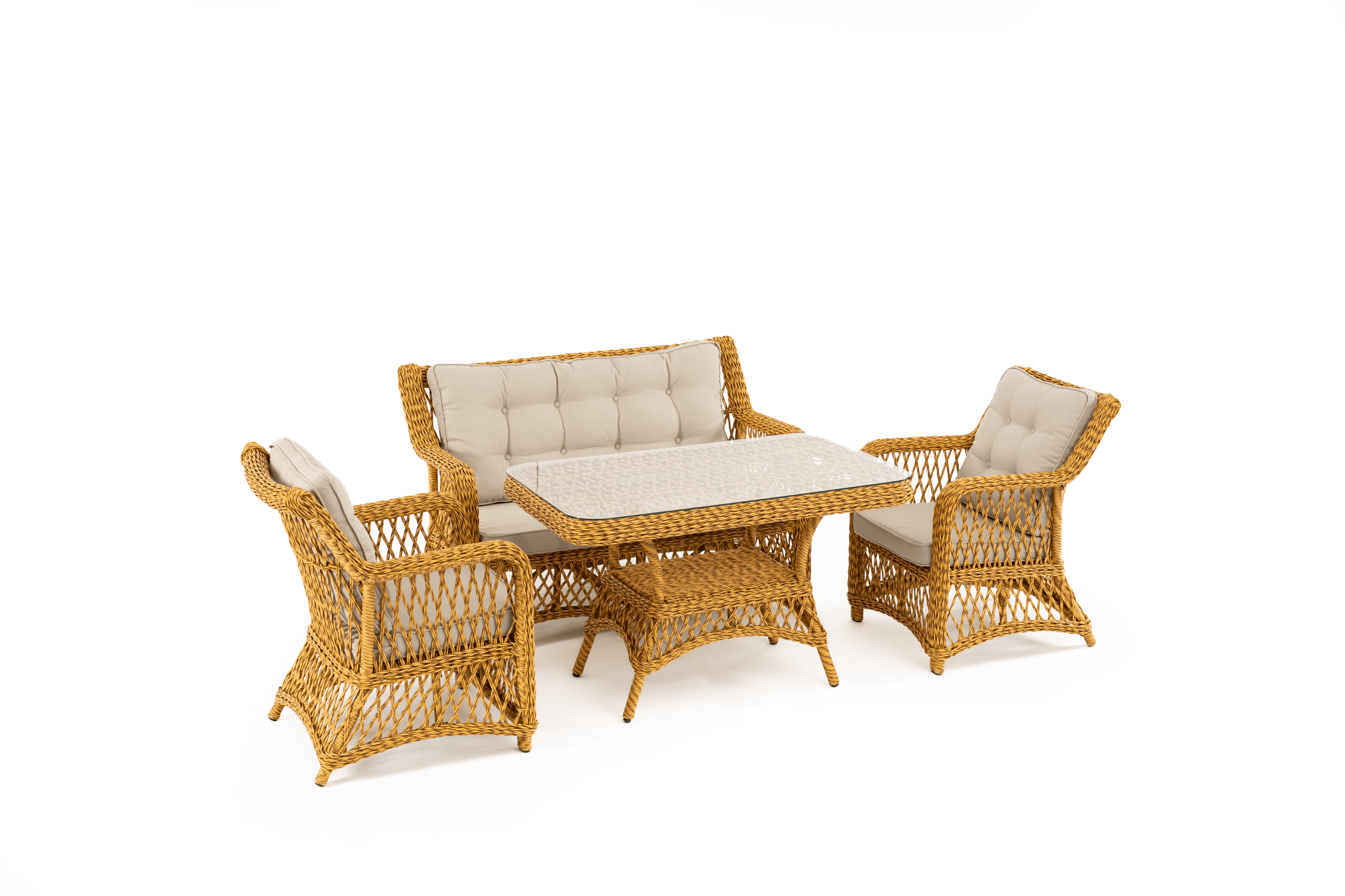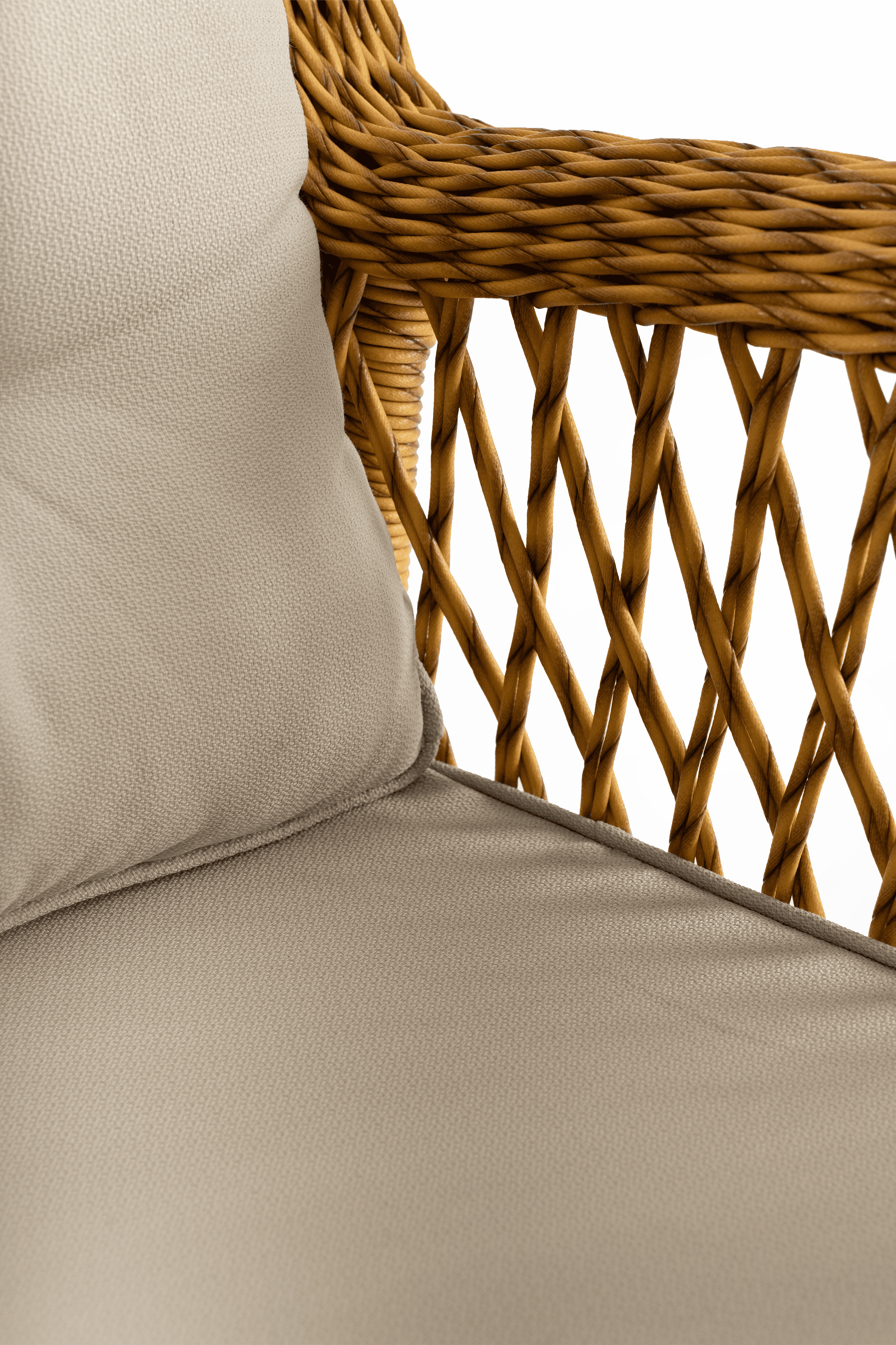 MATAHARİ MİNİ, kompakt ölçüler içinde dengeli bir bütünlük sunmak üzere tasarlanmıştır. Yalın formu ve kontrollü yerleşimi sayesinde küçük açık alanlarda düzenli, ferah ve davetkâr bir atmosfer oluşturur. 300 × 160 cm’lik ölçüsü, alanı verimli kullanırken konfordan ödün vermeyen bir yaşam alanı kurgular. 5 mm putar örgü yapısı, yüzeyde sade ama rafine bir doku yaratır. İnce örgü formu, tasarıma hafiflik kazandırırken uzun süreli kullanıma uygun sağlam bir yapı sunar. SAY-109 renk tonu, modern ve ferah bir ifade oluşturarak farklı mekânlarla kolayca uyum sağlar. Tekli ve üçlü koltuk modülleri, kompakt ölçülerine rağmen yüksek sırt yapısıyla destekleyici bir oturum sunar. Bu oranlar, kısa molalardan uzun oturumlara kadar rahat bir kullanım sağlar. 120 × 70 × 70 cm ölçülerindeki sehpa, oturma alanını tamamlayan işlevsel ve dengeli bir merkez parça olarak konumlanır. MATAHARİ MİNİ, balkonlar, küçük teraslar ve sınırlı açık alanlar için tasarlanmış; düzen, konfor ve sadeliği bir araya getiren pratik bir çözümdür. Küçük ölçekte güçlü bir tasarım dili sunar.