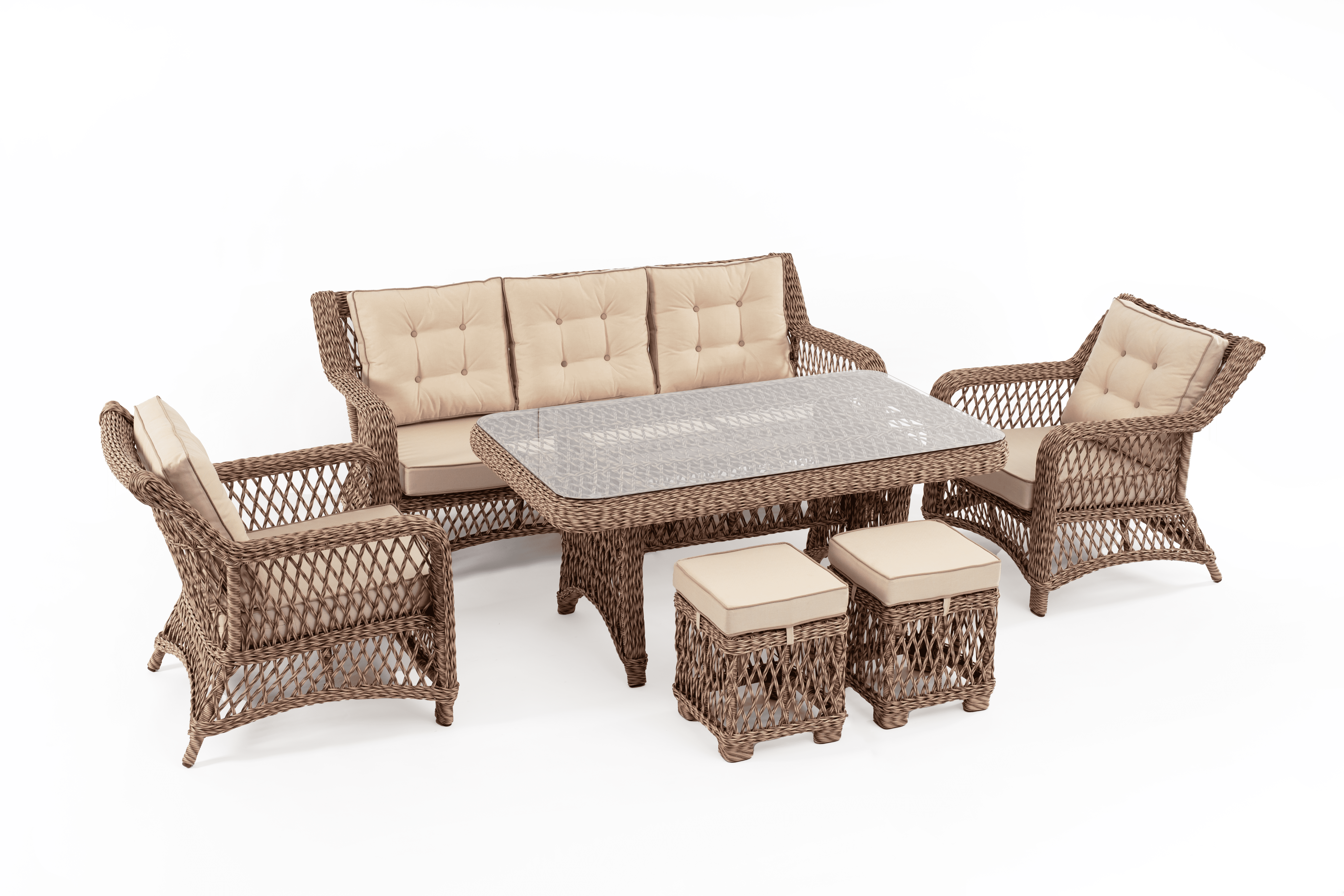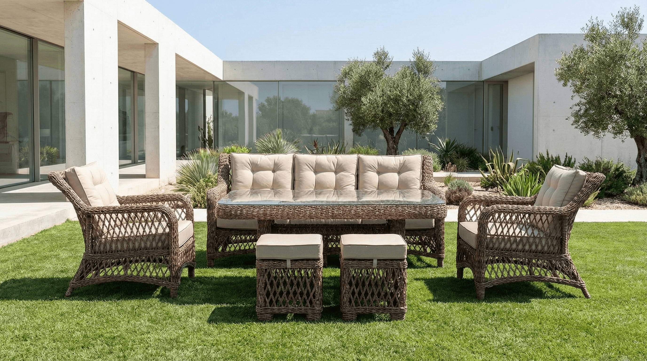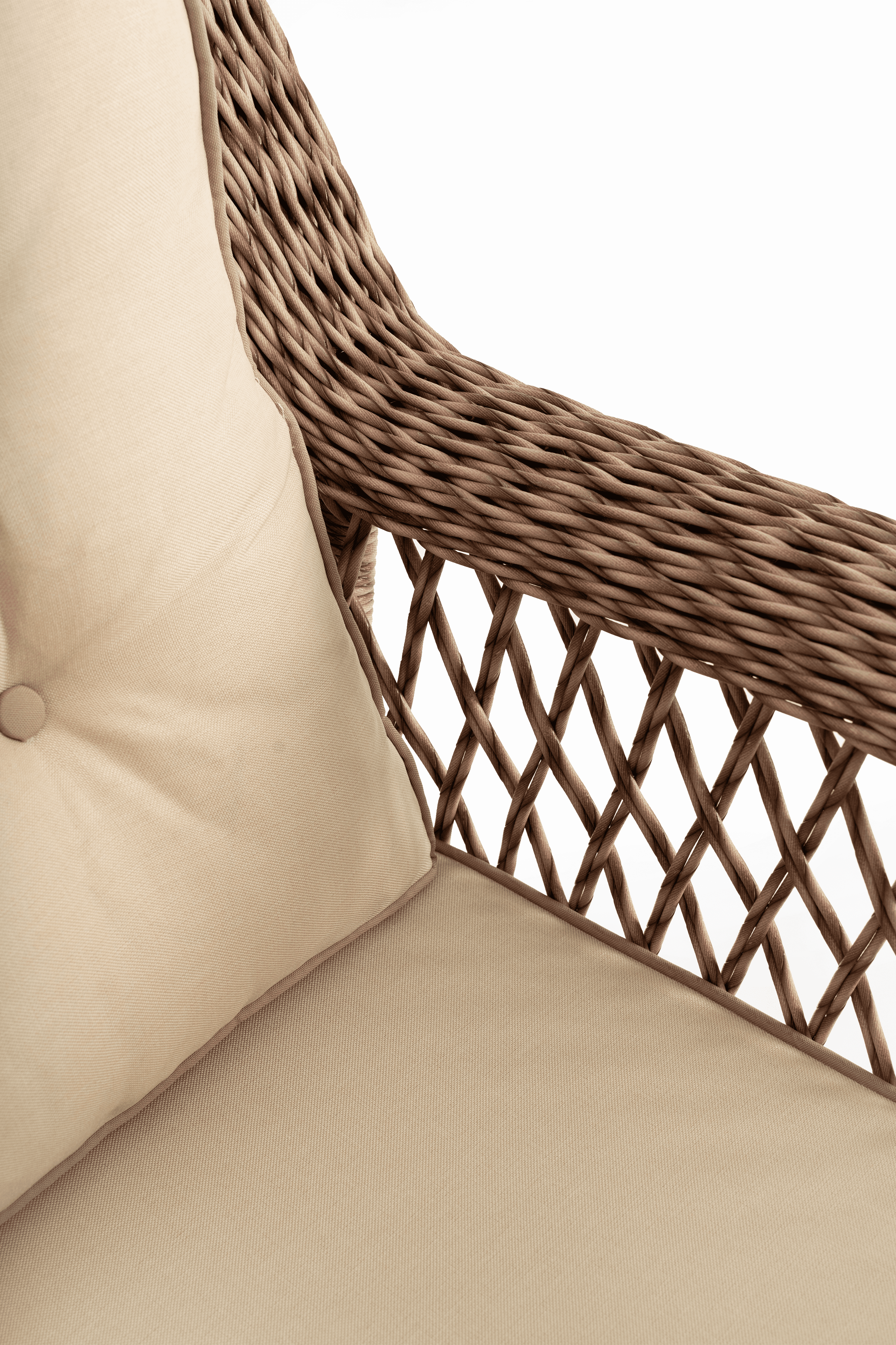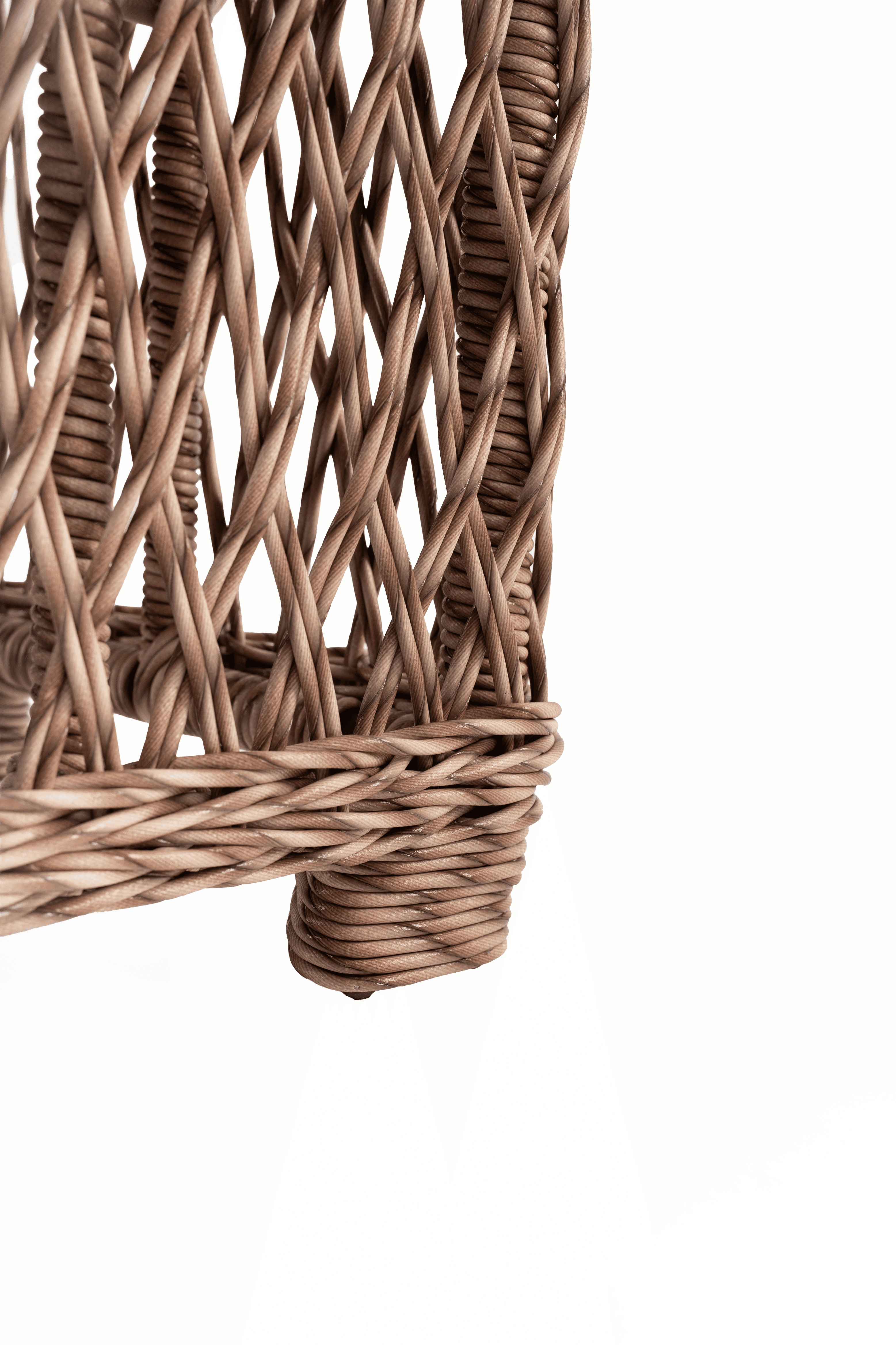 MATAHARİ, konforu merkezine alan ama estetikten ödün vermeyen bir tasarım yaklaşımını temsil eder. Dengeli oranları ve yumuşak hatlarıyla açık alanlarda sıcak, davetkâr ve rafine bir atmosfer oluşturur. 350 × 210 cm’lik yerleşimi, sosyal alanlar için ideal bir bütünlük sunar; mekânı doldurur ama ağırlaştırmaz. 5 mm putar örgü dokusu, yüzeyde kontrollü ve homojen bir etki yaratır. Bu incelikli yapı, tasarıma sade bir zarafet kazandırırken uzun süreli kullanıma uygun sağlam bir karakter sunar. SAY-101 renk tonu, ferah ve zamansız bir ifade oluşturur; farklı mekân kurgularına kolayca uyum sağlar. Tekli (80 × 90 × 85 cm) ve Kanepe (200 × 90 × 85 cm) koltuk modülleri, derin oturum ölçüleriyle rahatlığı ön plana çıkarır. Yüksek sırt yapısı, uzun oturumlarda destek sunarken konforu görünür kılar. 150 × 90 × 70 cm ölçülerindeki sehpa, oturma alanını tamamlayan işlevsel ve dengeli bir merkez parça olarak tasarlanmıştır. MATAHARİ Koltuk Takımı, bahçelerde, teraslarda ve açık hava yaşam alanlarında; samimi, sıcak ve zamansız bir konfor arayanlar için ideal bir seçimdir. Gösterişten uzak ama hissedilir bir kalite sunar.