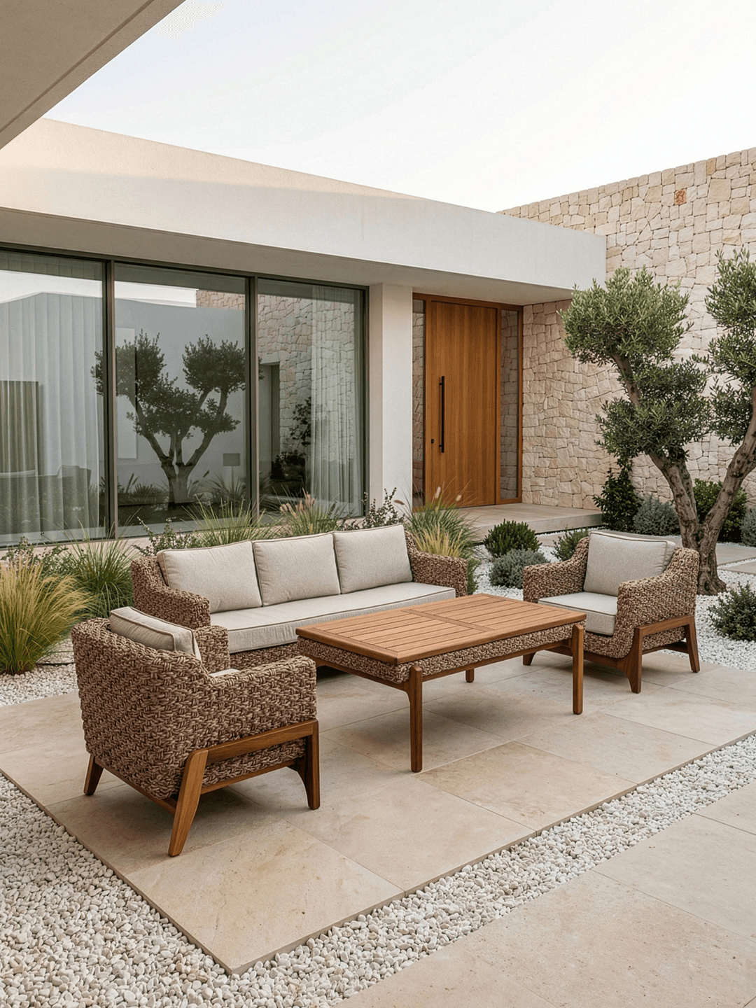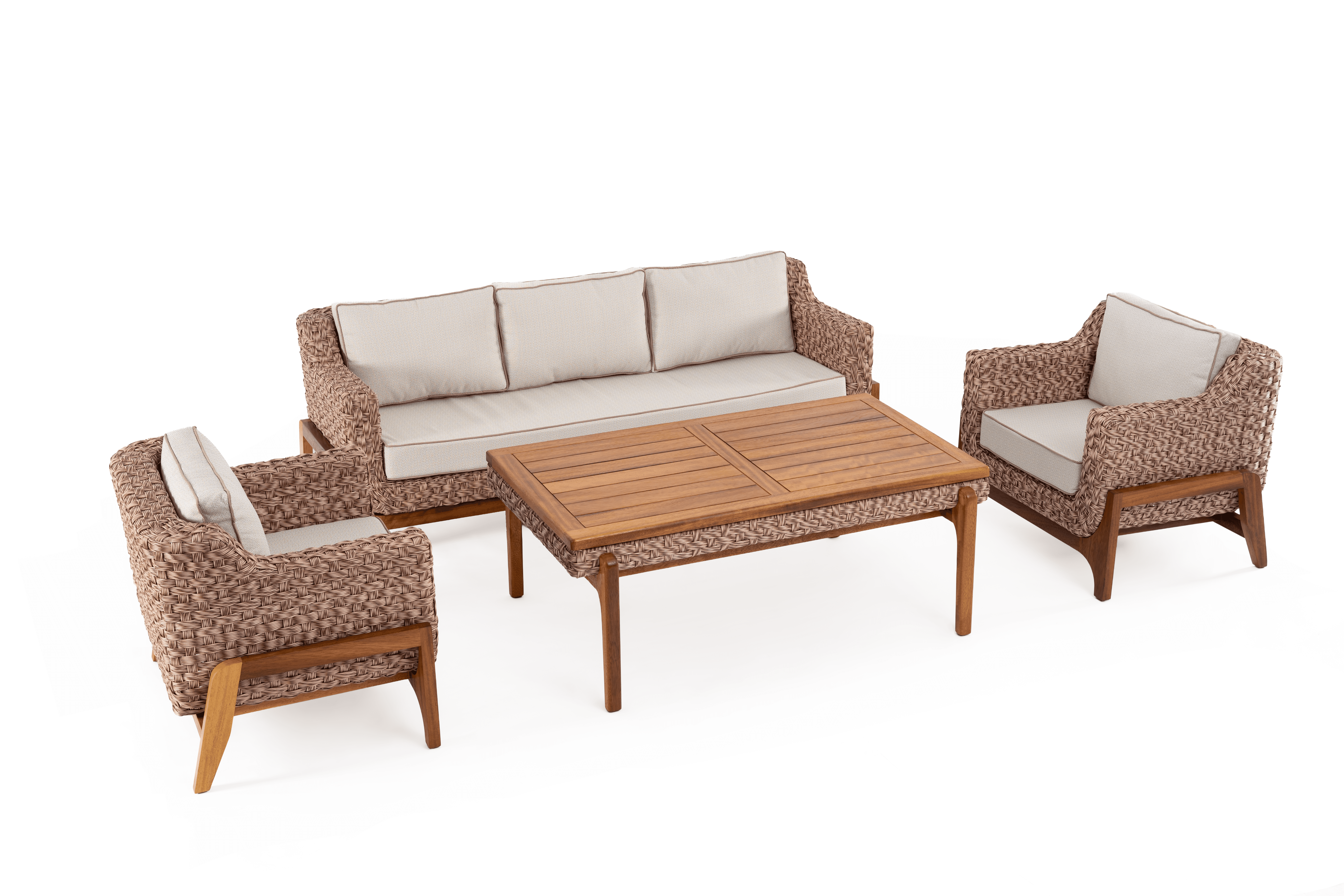 PLUMBON Dış Mekan Koltuk Takımı Kod: SAY-12 | Renk: SAY-101 Dış Mekan İçin Tasarlandı: PLUMBON, konforu açık havaya taşıyan, ahşap ve rattanın hibrit mühendisliğiyle üretilmiş üst segment bir oturma grubudur. Teknik ve Estetik Detaylar: Hibrit Dış Mekan Yapısı: Ahşap iskeletin doğal sıcaklığı, rattanın esnekliğiyle birleşerek dış mekan (bahçe, teras, veranda) kullanımına uygun, dayanıklı bir form oluşturur. Premium Örgü: Üründe 4 mm Putar örgü kullanılmıştır. Bu kalın kesitli örgü tipi, UV ışınlarına ve dış etkenlere karşı yüksek direnç gösterirken, koltuğa görsel bir zenginlik ve dolgunluk katar. Tasarım: SAY-101 renk kodu, doğayla yarışmayan, onu tamamlayan bir tona sahiptir. Sonuç: Sadece bir bahçe mobilyası değil; uzun yıllar keyifle kullanacağınız, estetik ve mukavemetin buluşma noktası.