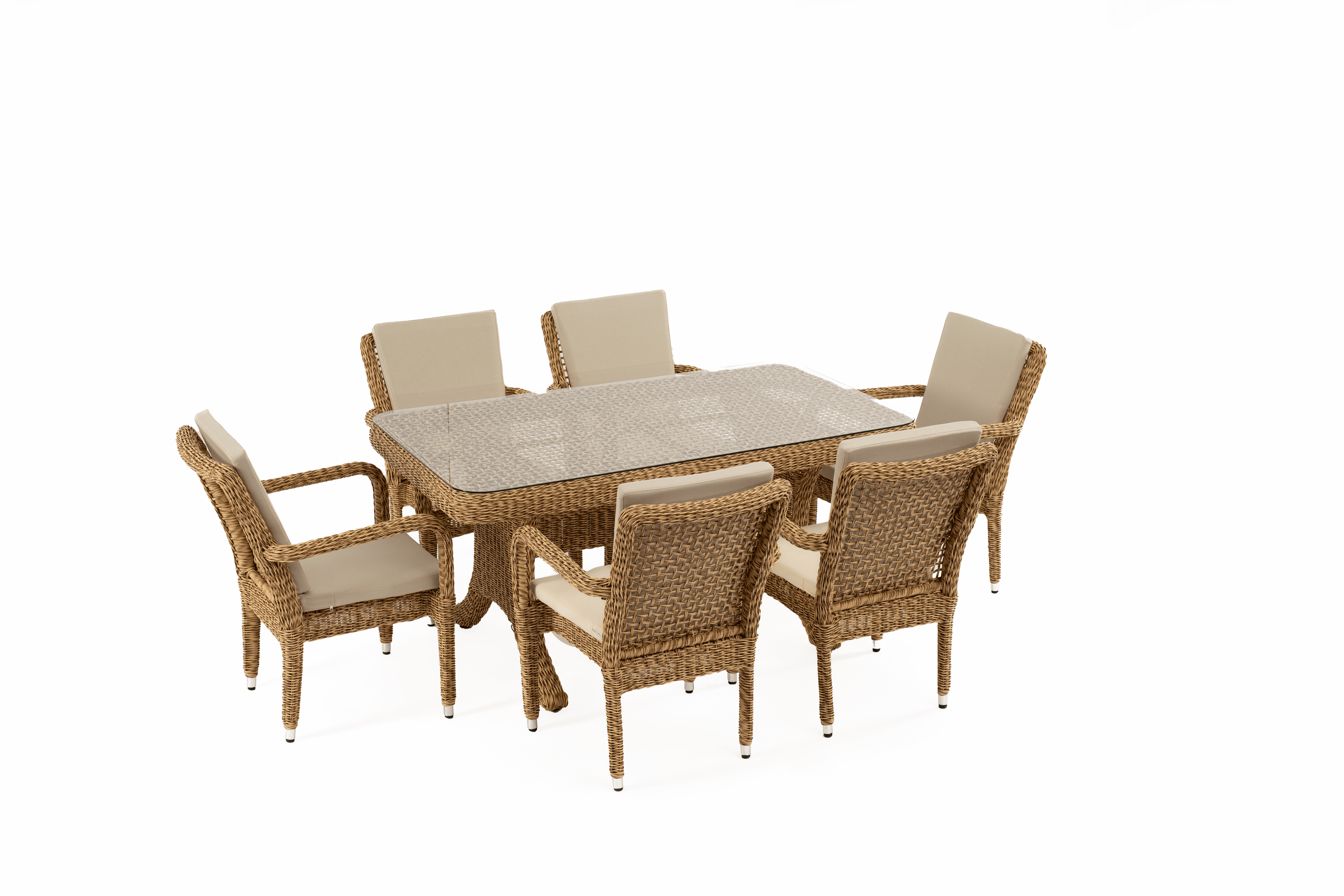 Günün yorgunluğu bittiğinde, keyifli anlar iyi bir sofrada başlar. UNTA Yemek Takımı, sizi ve sevdiklerinizi bir araya getiren o anları daha konforlu ve daha özel kılar. Yumuşak tonlu SAY-104 rengiyle bulunduğu ortama doğal bir uyum sağlar; 4 mm Putar örgü detayları ise hem göze hitap eder hem de sağlamlığıyla uzun yıllar eşlik eder. Abartısız ama kendini hissettiren bir şıklık sunar. İster sakin bir akşam yemeği, ister kalabalık bir sofra… UNTA, her kullanımda rahatlığı ve estetiği bir arada yaşatır. Bahçe, teras ve balkonlarda sıcak bir atmosfer oluşturur. UNTA, sadece bir yemek takımı değil; günlük anlarınızı daha keyifli hale getiren bir yaşam alışkanlığıdır
